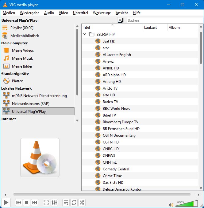 SAT>IP-Server per UPnP im Netzwerk unter "Wiedergabeliste", aber